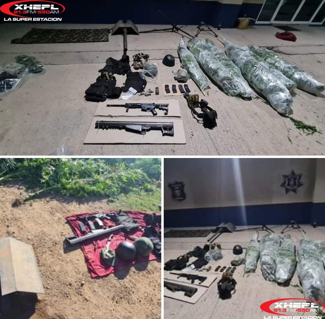 Elementos de la Subsecretaría de Estado Mayor de la Secretaría de Seguridad Pública del Estado (SSPE), en el marco del operativo de refuerzo en el municipio de Cuauhtémoc, localizaron en la localidad de Lázaro Cárdenas, un campamento utilizado por miembros de la delincuencia organizada en el que aseguraron un arma de fuego, una pieza de una ametralladora calibre .50, piezas de blindaje artesanal, droga y equipo táctico.