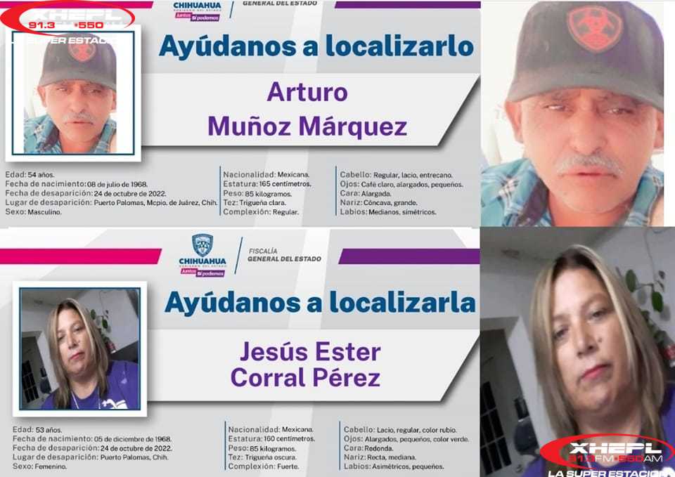 La fiscalía general del estado emitió las pesquisas para tratar de localizar a una pareja que salió de la ciudad de Cuauhtémoc el pasado 24 de octubre con destino a Puerto Palomas, municipio de Juárez quienes desaparecieron.