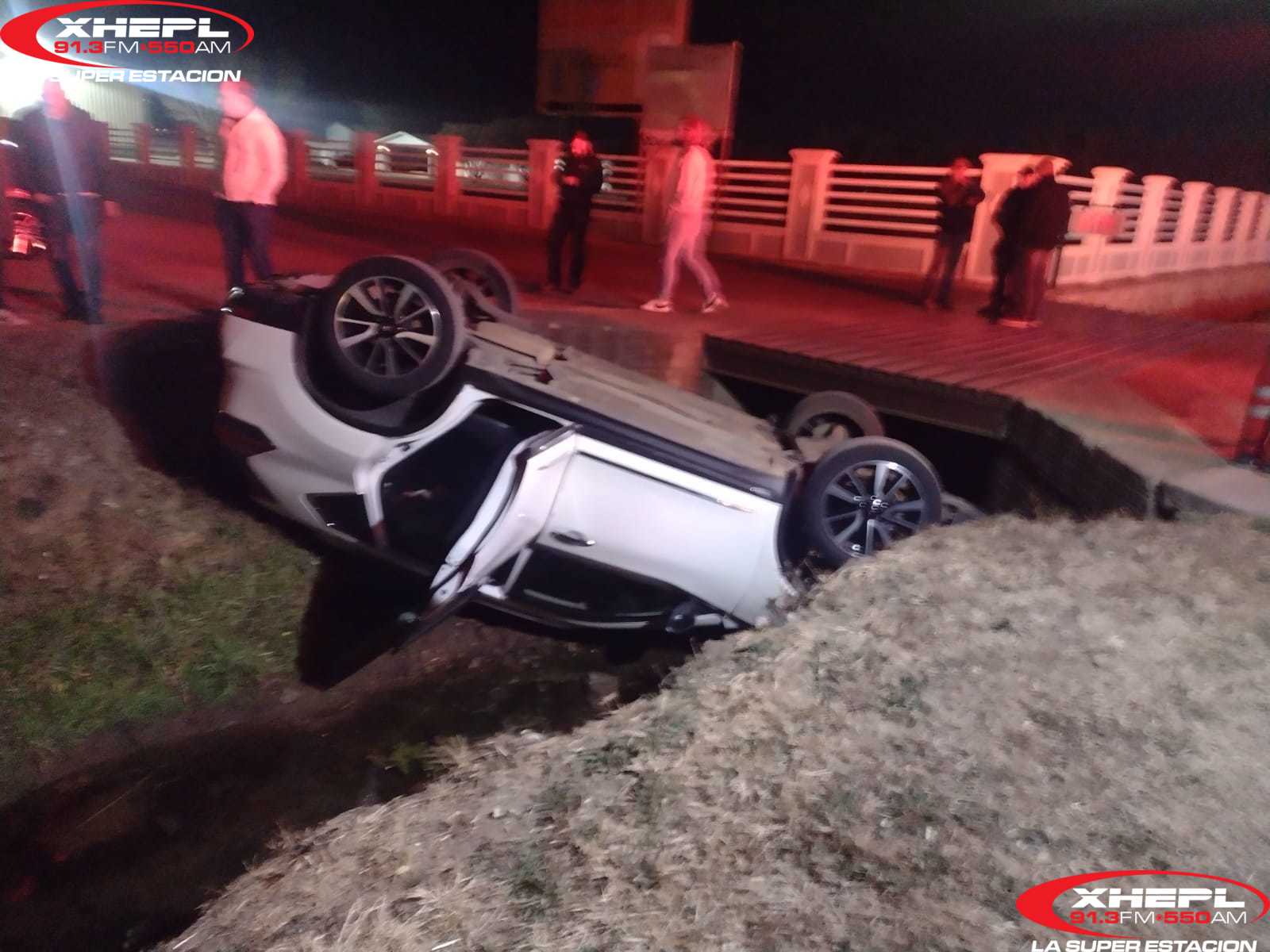 El accidente sucedió cuando el vehículo salió de un local comercia y al l cruzar el puente cayó primero la llanta delantera y al no contar con barandal o algún tipo de barrera de contención en el puente, sobrevino la volcadura.