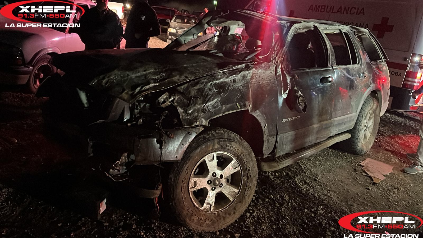 Personal de Investigación de la Fiscalía de Distrito Zona Occidente que acudió al lugar informó que tuvo a la vista una camioneta negra, linea Explorer, modelo 2005 sin placas,. volcada.