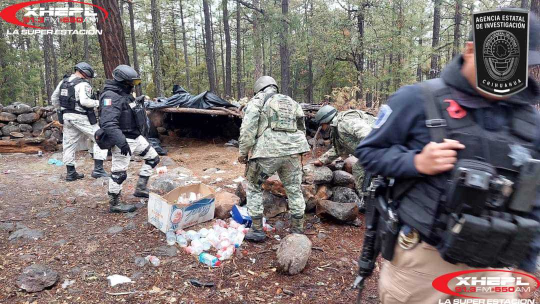 En patrullajes que realizan de manera conjunta los cuerpos de seguridad de diferentes órdenes de gobierno en el municipio de Madera, localizaron un campamento que presumiblemente era utilizado por una célula criminal.