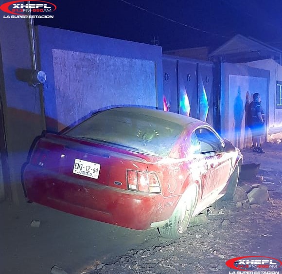 Cd. Cuauhtémoc, Chih.- Un vehículo Mustang se impactó contra un domicilio a las 22:58 horas del sábado 30 de mayo, en las calles Constituyentes de 1917 cruce con Mariano Azuela, de la colonia Emiliano Zapata.