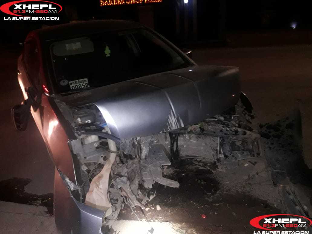 Cd. Cuauhtémoc, Chih.- Un choque contra objeto fijo se presentó a las 22:00 horas del viernes 31 de julio en las calles Baja California cruce con 22 de la zona centro.