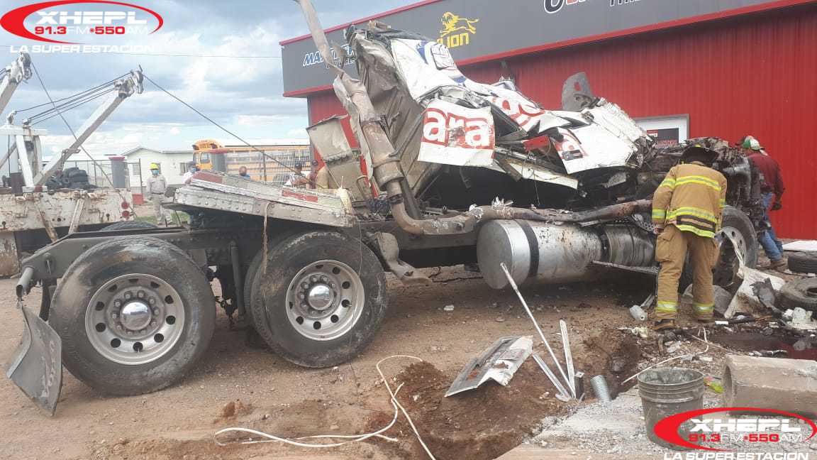 Cd. Cuauhtémoc, Chih.- La Dirección de Seguridad Pública Municipal dio más detalles sobre la colisión entre un automóvil y un camión de carga que a su vez se impactó contra tres postes de luz y una llantera.