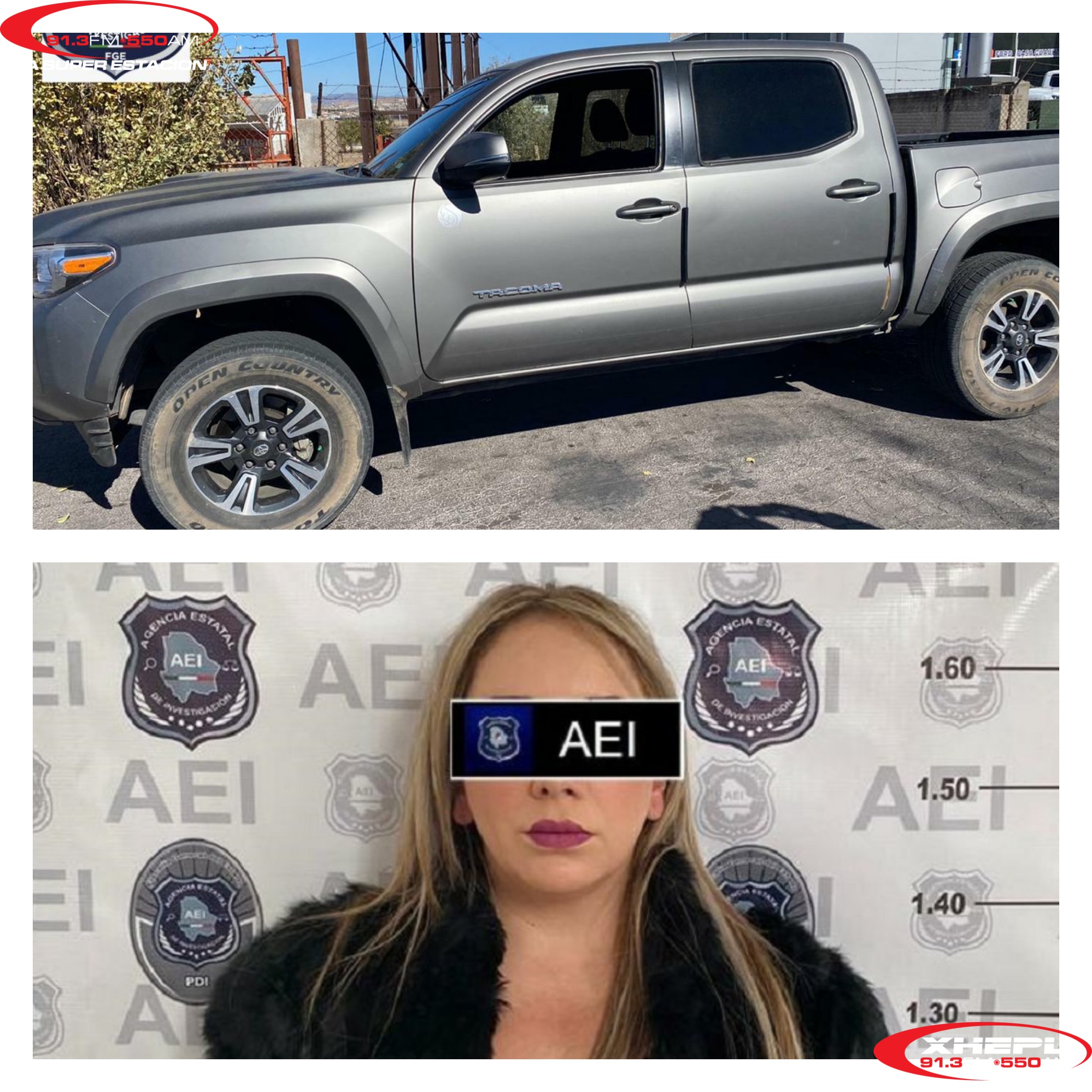 La detenida responde al nombre de Lina Alejandra R. C., de 34 años de edad y con domicilio en la ciudad de Chihuahua a quien le aseguraron un vehículo Toyota, Tacoma, modelo 2017 con placas de circulación EF 35195, robada el 27 de abril de 2018, en la ciudad de Chihuahua.