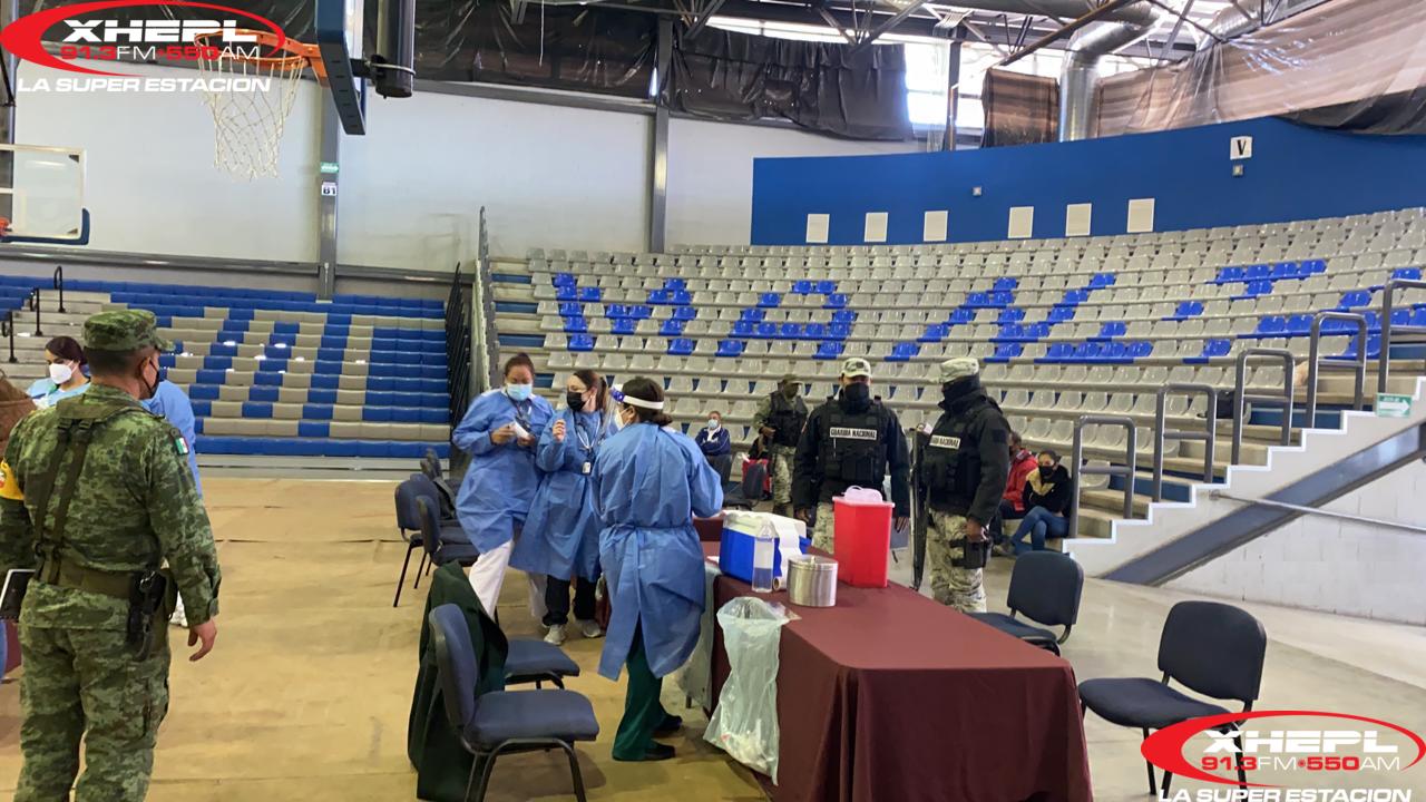 En el Gimnasio del CBTa 90 se aplicaron mil 765 dosis en total y no hubo pérdida de ninguna dosis, en este punto llegaron personas desde las cinco de la mañana para hacer fila.