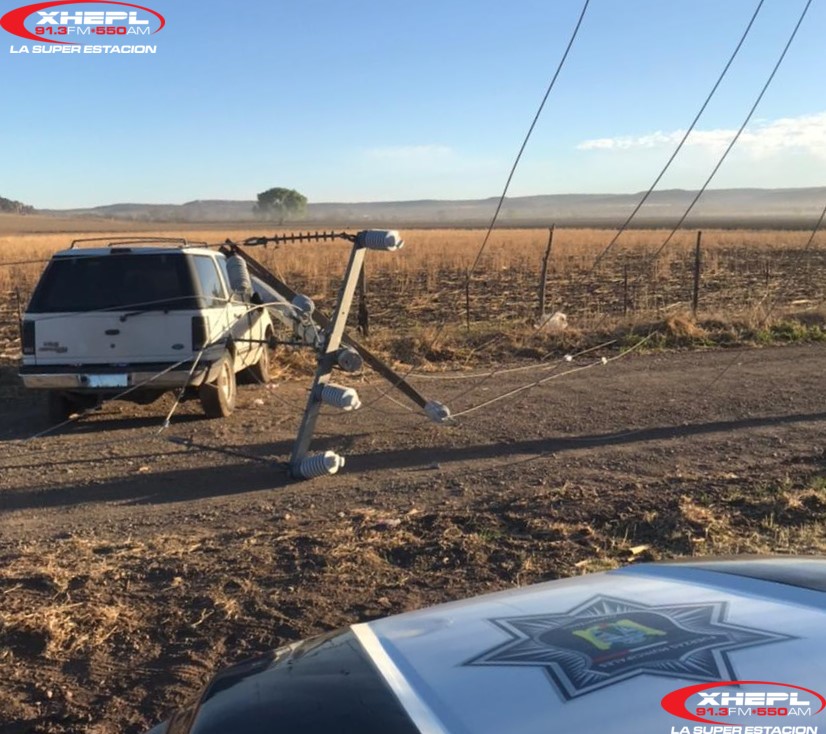 Abandonan camioneta tras impactarse contra poste propiedad de la CFE