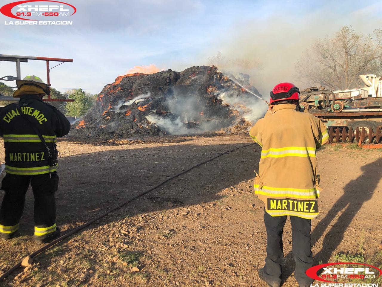 En el lugar se realizaron labores de control y contención de un incendio que se presentó en 540 pacas de pastura y que ocasionó pérdidas económicas por 130 mil pesos, de acuerdo a lo que manifestó un hombre de la comunidad menonita que se identificó como propietario.