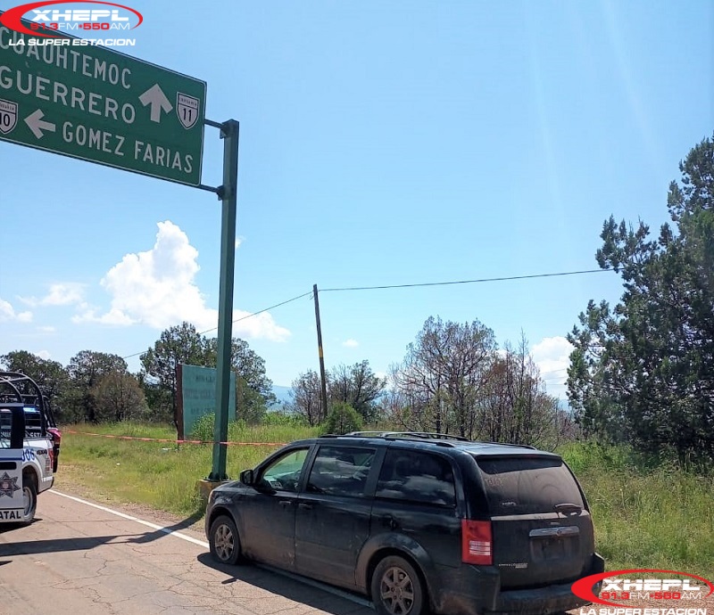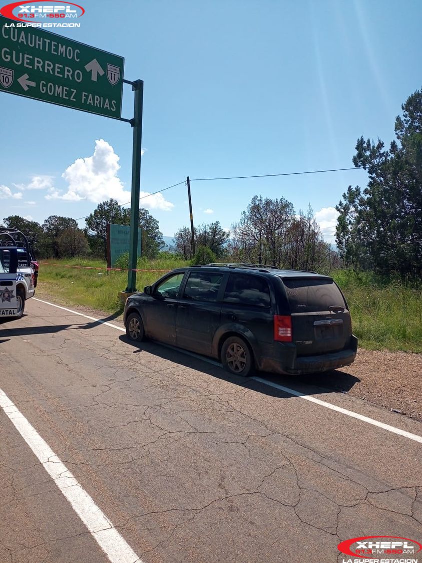 Cuauhtémoc.- El vehículo en el que fueron localizadas tres personas sin vida por heridas producidas por arma de fuego en el entronque La Concha, municipio de Temósachic, contaba con reporte de robo.